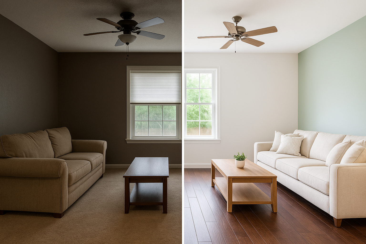 Nothing changes the vibe of a home faster than a fresh coat of neutral paint. Think soft greige, clean white, or warm taupe. This simple upgrade yields a 100%+ ROI. Pro tip: avoid bold colors—they turn off more buyers than they attract.
